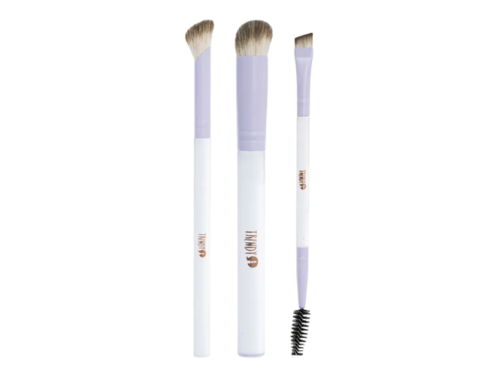 Incluye 1 brocha doble para cejas, 1 brocha tipo kabuki mini y 1 brocha difuminadora angular.