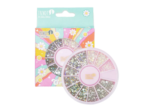 El kit trae 4 tonos de gemas. Cada tono tiene 3 tamaños de piedritas diferentes. Son muy reflectantes y tienen un brillo hermoso.