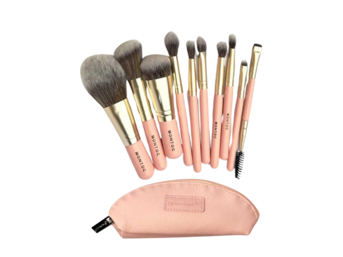 Set de Brochas mini Zoe Rose Montoc: 10 brochas de alta calidad, cerdas suaves, mango ergonómico y estuche reutilizable. Perfecto para un acabado profesional, tanto para principiantes como expertos.