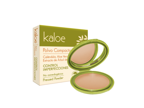 Polvo Compacto Kaloe Control Imperfecciones Unifica el tono de la piel dejando una apariencia natural, controlando la producción de grasa, unificando el tono de la piel.